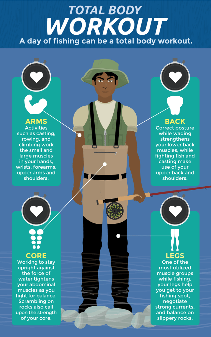 Unlike most physically taxing types of body activities, fishing is a calming activity that triggers the relaxation response of the body.